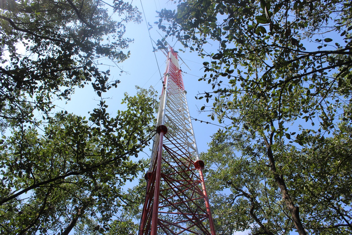 Torre de flujo de carbono en las instalaciones de la PTAR
